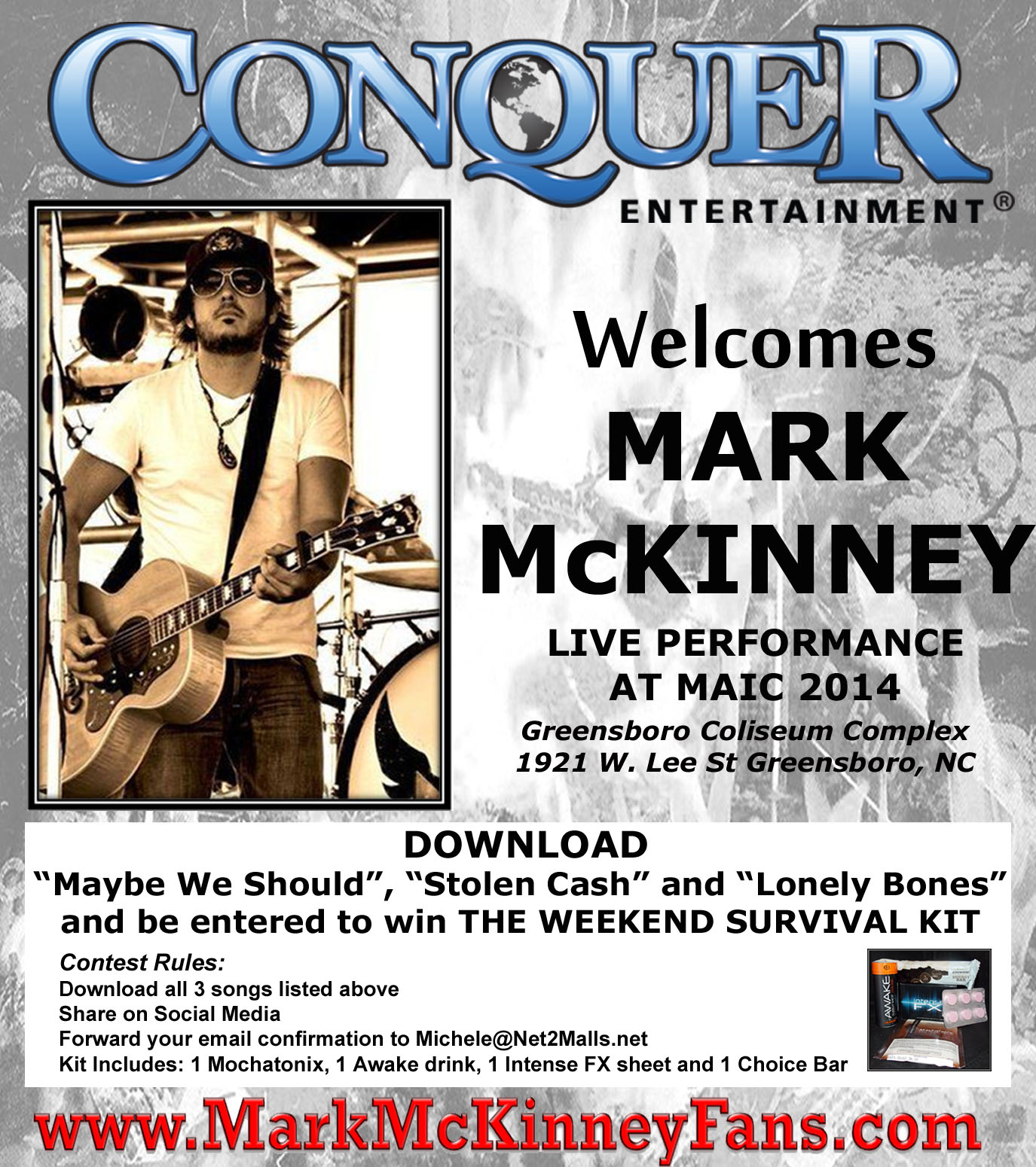 Recently we had to opportunity to meet Mark McKinney on a recent trip to Texas thanks to Michele and Bruce Ahlswede. Mark has over 30,000 fans in his base. He will be one of the featured artists on main stage Friday Aug 8th in Greensboro NC for the Market America International Convention. He is very interested in converting the fans to customers. Please come say hi to Mark at the Conquer booth. We are running a contest from now till convention giving away several “Weekend Survival Kits”. Distributors may enter.